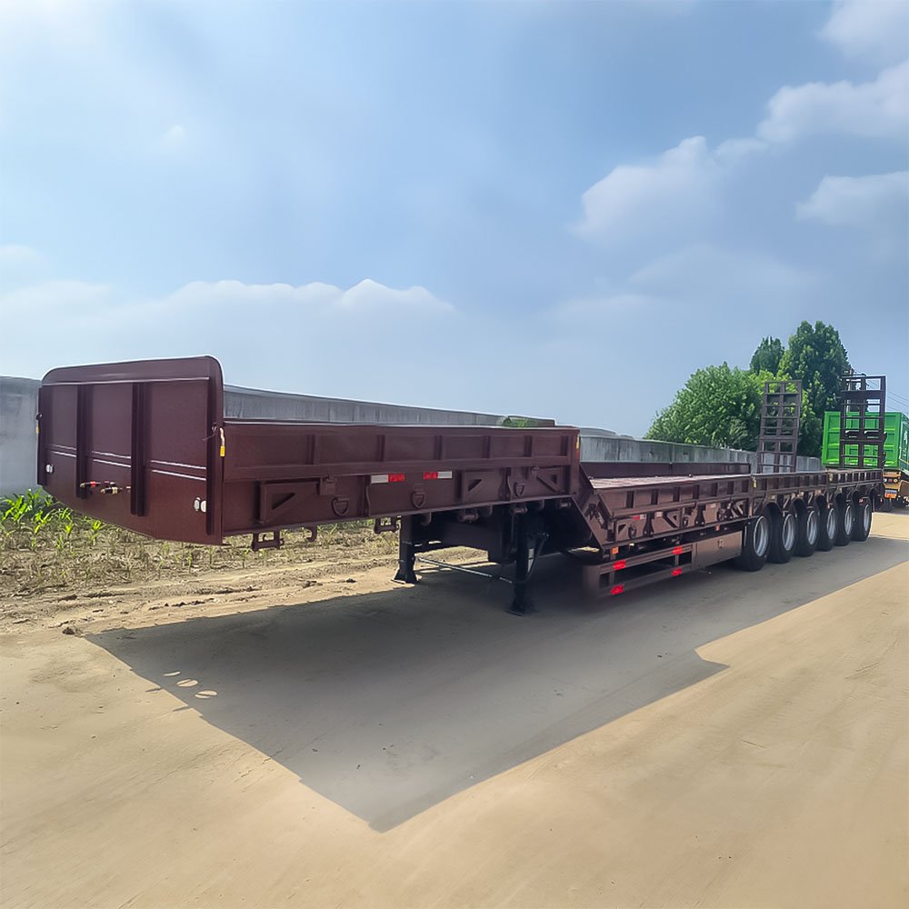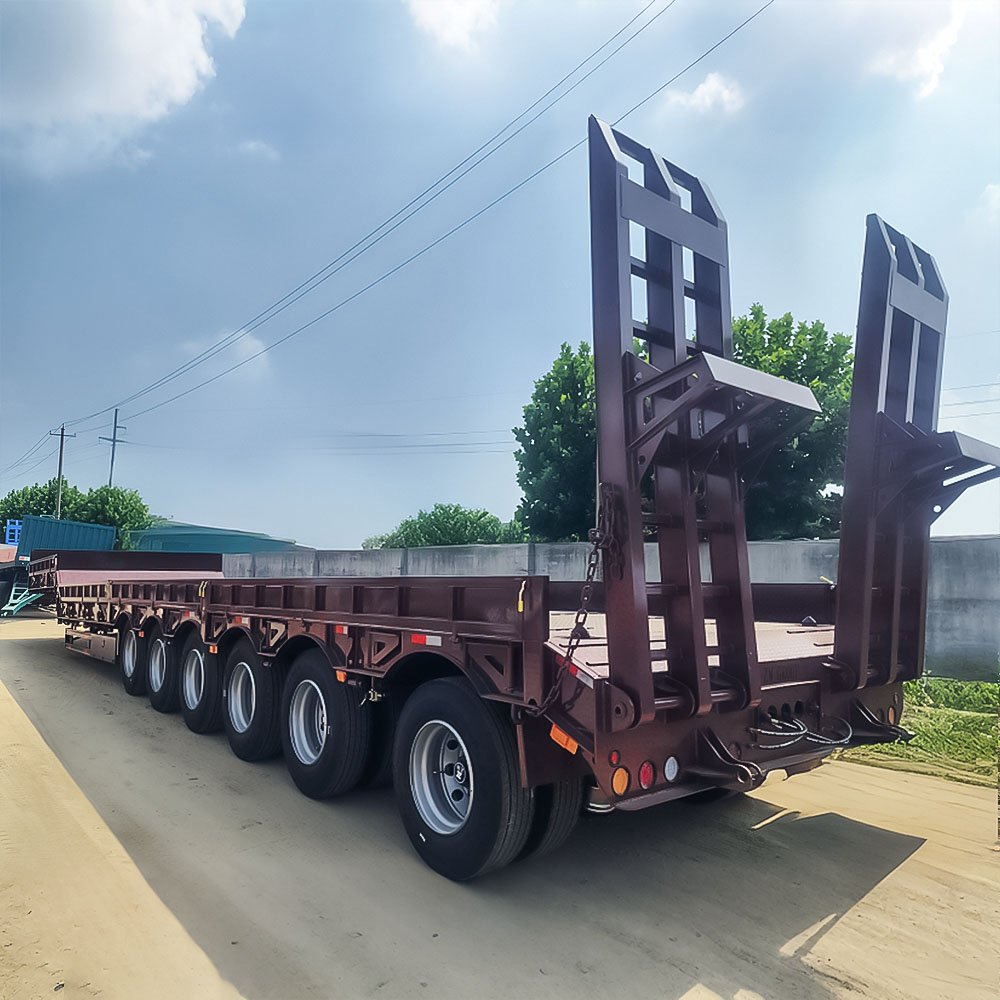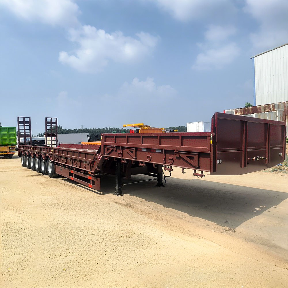 Built with high-strength Q355B steel and a reinforced low-profile deck structure, the trailer ensures excellent load stability and durability under extreme working conditions. The low deck height allows easy loading of tall equipment while maintaining compliance with transport regulations. This heavy-duty lowbed trailer is widely used in Africa, the Middle East, and Southeast Asia, where infrastructure and mining projects require reliable heavy transport solutions.