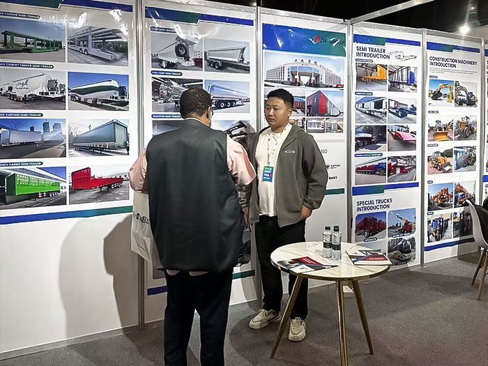 As a result, as one of the leading manufacturers of tanker trailers, powder tanker trailers, and flatbed semi-trailers in China, ZW Semi-Trailer actively presented product posters, demonstration videos, and engineering diagrams, allowing visitors to clearly understand our trailers’ structural strength, material quality, and safety performance.